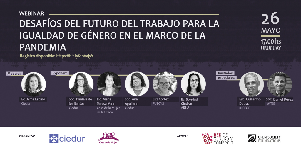 Ciedur y la Casa de la Mujer de la Unión les invitan a reflexionar y debatir en el webinar: DESAFÍOS DEL FUTURO DEL TRABAJO PARA LA IGUALDAD DE GÉNERO EN EL MARCO DE LA PANDEMIA.