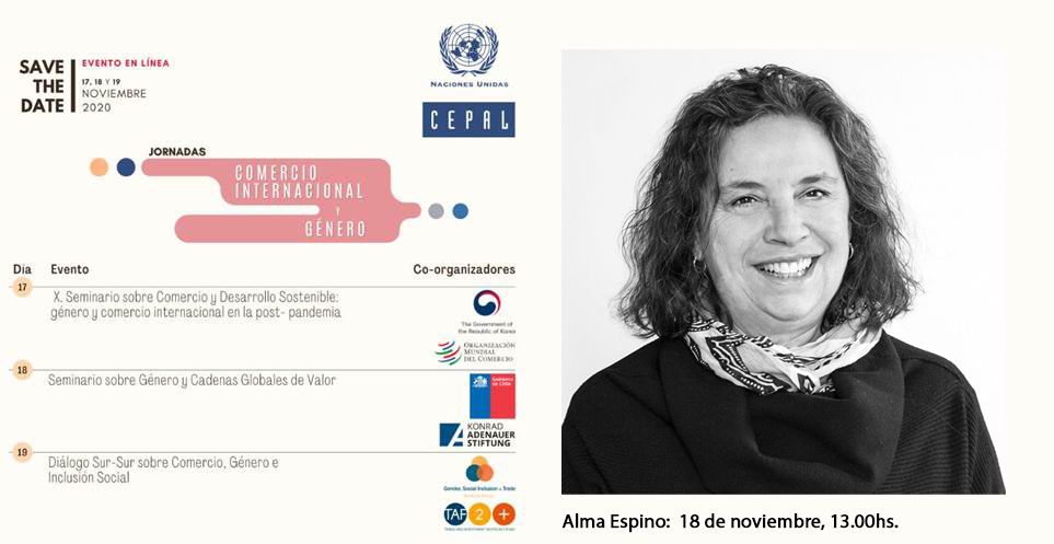 La División de Comercio Internacional e Integración y la División de Asuntos de Género de la Comisión Económica para América Latina y el Caribe (CEPAL), en colaboración con organismos públicos y de ayuda al desarrollo, organizan tres jornadas para presentar diversos enfoques sobre el vínculo entre comercio internacional, brechas de género y la autonomía económica de las mujeres, así como las políticas comerciales que pueden contribuir a la igualdad de género. 17, 18 y 19 nov. 2020