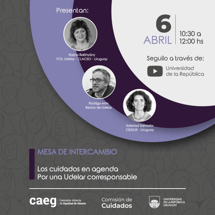 La mesa es organizada por la Comisión Abierta de Equidad de Género (CAEG) y la Comisión de Cuidados de la Universidad de la República.