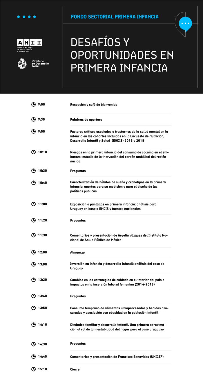 La Dirección Nacional de Desarrollo Social, a través de Uruguay Crece Contigo y ANII, realizarán el encuentro “Desafíos y Oportunidades en Primera Infancia”, el martes 28 de marzo, de 9 a 16 horas.
