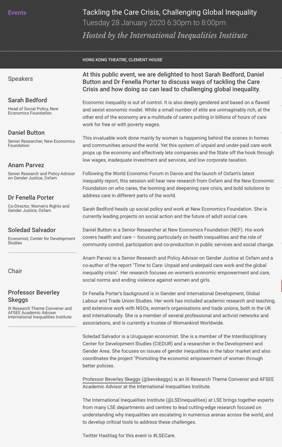 En el marco del evento «Tackling the Care Crisis, Challenging Global Inequality», Soledad Salvador, invitada por